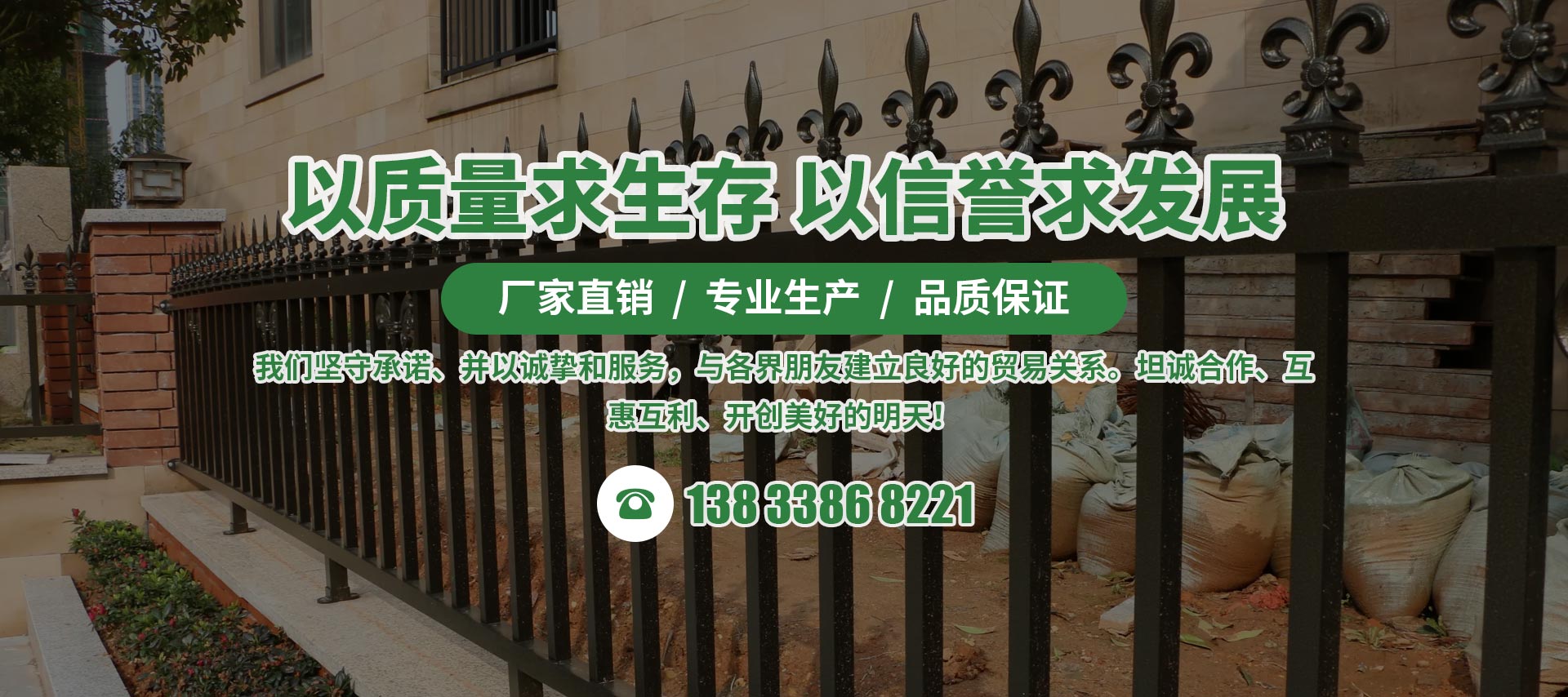 我公司是集產品研發、生產、銷售于一體的綜合性生產企業,在業內享有極高知名度,公司在全體同仁艱苦奮斗、求實創新的精神指導下正一步步邁向新的輝煌。我廠現有大量沖壓焊接設備,,檢測設備10臺能加工各種常規和特殊規格的鋅鋼護欄網?,F有員工168人,技術和檢驗人員25人有我新、老客戶鄭重承諾:決不讓一件不合格產品進入市場,也不會讓一個服務讓你失望。另外本公司常年現貨,少量樣品訂單和發貨在任何時間。